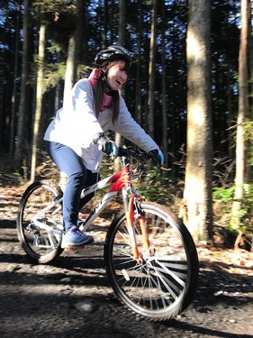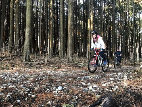 前回は、河原のほとり…というか、割と初心者でも乗りやすい場所でした。 そして今回は、いよいよマウンテンバイクで林道に挑戦です! ・マウンテンバイクの特徴 (タイヤが太い、サスペンションが付いてデコボコ道の走行にも強い) ・走行中は、お尻をサドルから浮かして膝をクッションに ・ダウンヒルを下る際は、ペダルを左右水平に保つ ![]() ![]() そして、マウンテンバイクの最大のお楽しみといえば…ダウンヒル!