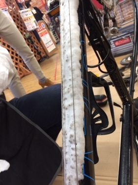 でも実は、タイヤ付近だったり、フレームの腹(下側)には、泥や汚れがビッシリ付いてるんです! クリーニングのポイントは… ①自転車を裏返して、下側から洗浄していく ②スポーツタイプの自転車なら、簡単にタイヤが外せるので、外してクリーニング (ブレーキ周りは、わりと汚れています。汚れはブレーキの効きにも影響するので、必ずチェック) ③泡クリーナーを使えば、拭き上げるだけで簡単にクリーニング(洗浄)できちゃいます ![]() ![]() ![]() 本当に簡単にできちゃいました!