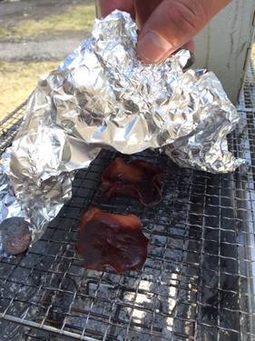他にも、ソーセージとか、ナッツなんかもいぶすとウマいんだとか …今回は、スモーカーと呼ばれるBOXを使って調理しましたが、 このスモーカーBOXが無くても、実はスモーク料理が楽しめるらしいんですよ!? 例えば、BBQとか焼肉とか…、炭の上にアミを張って焼きますよね? その炭の上に「スモークチップ」をふりかけて…煙が出て来たら、 そのまま、アミの上に 余った肉や、ハムを置いて…アルミホイルでふたをする。 風で飛ばされないように、アルミホイルのはしを小石などで抑えて…小一時間。 これで肉のうまみが凝縮された、スモーキーなジャーキーが作れちゃう♪ ![]() 今回も実に簡単なアウトドアクッキングをお届けしました。