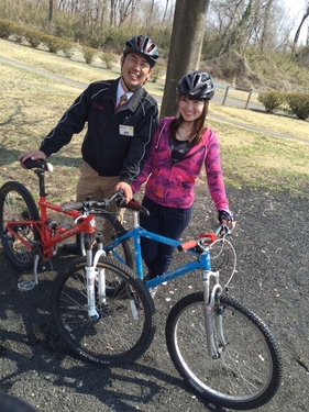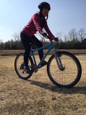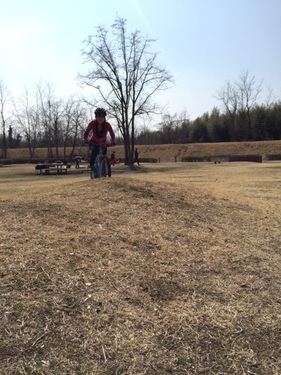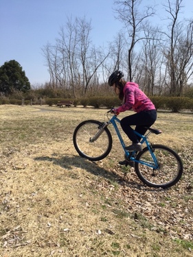 簡単に作れておいしい ホットサンド作りに挑戦したり、スモーク料理に挑戦! みんなでワイワイやってたところに…「ネオサイクリスタ」の渡部(わたなべ)さんも合流♪ お腹がいっぱいになったところで、次は、おもいっきり自転車遊びに! 晴天の昼下がりに、ユッキー覚えたてのマウンテンバイクを満喫♪ ![]() ちょっとした障害物や起伏を乗り越える際は、サドルからお尻を離して「空気椅子乗り」!
