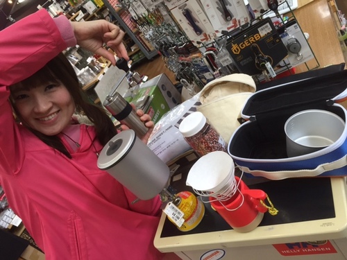 このコーナーでも、リポーターのユッキーが 「新習慣にアウトドアを!」 と、アウトドアデビューしました! 何かと便利な自転車…“マウンテンバイク”の乗り方を教わることから始まって “火起こし”や、“コーヒーを豆から挽いて味わう”。 他にも、アウトドア(・・・・・)ならでは(・・・・)の、カワイイデザインのアイテムにも興味を持って… あせらず、ゆっくり、アウトドアを楽しんでいるようです。 ![]() アウトドアへの入り方って、別に何でもいいんですよね!