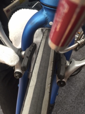 このブレーキシューが摩耗すると、ブレーキのかかりが悪くなります。 さらに、このブレーキシューがすり減ったまま使っていると ホイールリム(ブレーキの当たり面)が、すり減り割れてしまうことも! そして当然、ブレーキがかからなくなり事故につながります。 この時期に、ちゃんとチェックしときましょう! ![]() ●そしてワイヤー。 ママチャリの場合、細いチューブなどで覆われていますが