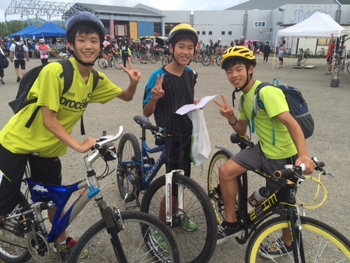 そして程よく涼しい山の風が、とにかく気持ちイイライド! そんな訳で、あっという間にエイドステーションに到着~ ![]() ・東京から初参加のファミリーも心地よい気候の中でのライドに満足!
