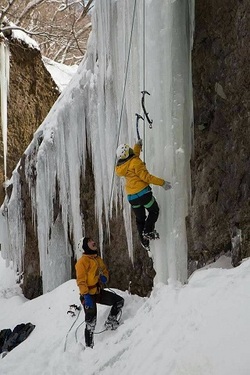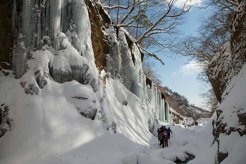 先週からこのコーナーでも、冬の雪山…というか渓谷、「雲竜爆に行こう!」ということで、 金属製の爪が付いた登山用具「アイゼン」を使って、 栃木の名所“氷の滝”を見に行った様子をお届けしていますが 雪の中歩いて1時間とちょっと… いよいよ雲竜爆へ到着♪ ![]() 今年の氷瀑の滝、高さは昨年の2/3くらい?