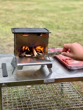 薪調理を極めるステンレス製・超小型焚火台! 薪や枝の投入がしやすく、安定した五徳で多彩な調理が可能。 広げるだけの簡単組み立て、折りたたむとお弁当箱サイズに!! 持ち運び収納もこれなら場所とらず! ![]() ![]() “焼く”を極める超小型調理器具!