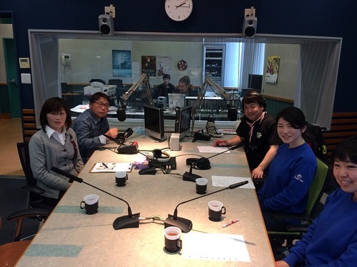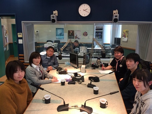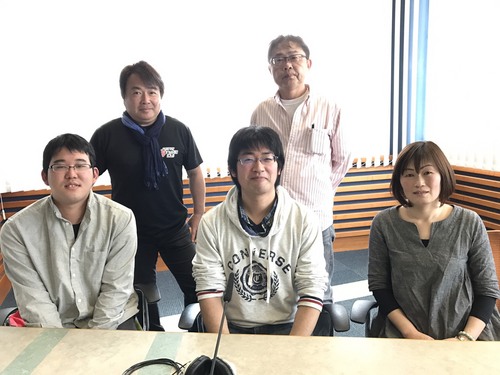 今回は、社会福祉法人藹藹会 新人職員の赤羽由姫乃さん、木下源太さん、森満里奈さんをお迎えしました。 ![]() 写真前左からDJ Kei、DJ T、坂巻主幹、