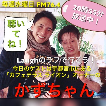 ギターだけではなく、ベースも弾きこなせるプロフェッショナルなアーティストです♫ 堀田さんには番組の中で歌う曲に伴奏を付けていただいています~♫ 改めての紹介でした♫ さてさて、2月7日放送のLaughのラフで行こう略して「ラフラフ」ですが、今回出演いただいたのは 宇都宮市でカフェテラスライオンのオーナーをしている「かずちゃん」に登場していただきました!! ![]() 本当に元気いっぱい、明るいステキなオーナーさん。