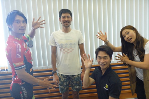 今週は、公開録音の模様!今週の放送は、10日(土) 那須塩原クリテリウム会場での行った 公開録音の模様をお送りしました! 会場から寄せられた優勝予想から、よっしーが予想した、 シマノレーシングの入部選手が、飛び入り参加!! 新婚パワーが最近の好調のカギ!だそう! ブリッツェンにも新婚がいますね。。 あれ?? この番組には、新婚さんのコーナーがあったような? 乞うご期待!! |