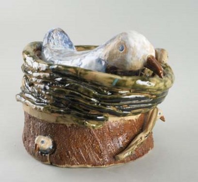 これも陶芸作品とは驚きですよね。 パーツを工夫していたり、釉薬も何種類も使い分けていたり、 本当に細かい作業で時間もかかる素晴らしい作品ですね。 中学校時代のこの活動に誇りを持って、今後もそれぞれに活躍して欲しいと思います。 |