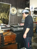 数十枚のレコードと年季の入ったレコードプレーヤー。