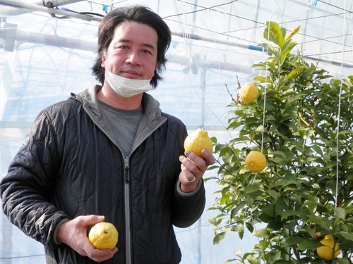 この日は風も強く本当に寒かったのですが ハウスの中は小春日和。 じわりじわりと汗が出てきます。 そう、これも林屋さんと同様に 木のパワーを使って温められているのです。 こちらで利用しているのは チップボイラーとのこと。 インタビュー中にも ダラダラと汗が・・・ うーん、すごい威力。 みかんはみかんでも、いわゆる温州みかんではなく 星さんが育てているのは「はるか」という 日向夏の自然交配種。 見た目はデコポンのような形です。 ![]() レモンのようにも見えて酸っぱそう・・・