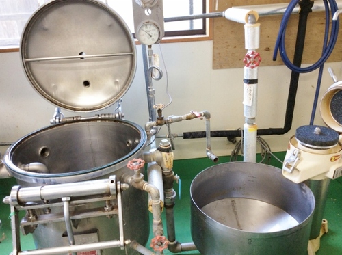岩村ファームで豆腐づくりを見学!![]() 使う大豆は岩村さんが育てたフクユタカ。 これらの機械で、 あらかじめ水に浸けておいた大豆を すりつぶし“呉”というお豆腐のモトを作ったら 大きな圧力窯にかけます。 止めるタイミングが数十秒違うだけでも 出来が変わってしまうのだとか。 目盛りと真剣に向き合いながら 今だ!というタイミングで止めます。 ![]() 材料はそのまま絞り機へと流れます。 左からは、豆腐に使う豆乳。 真ん中からは、おからが出ています。 搾りたてのおからは つやがあってなめらかな質感。 ホワイトチョコレートのように見えました。 出てきた豆乳は、布袋でこします。 出来立てを味見させてもらいましたが 舌ざわりなめらかで美味しい~~!! まったく青臭くなく、がぶがぶ飲めちゃいます! この豆乳で豆腐を作ったら まちがいなく美味しいっ!! ![]() カップにはあらかじめ 沼津産の良質な天然にがりが入っています。 ここに、手桶から豆乳をIN! 見ていると簡単そうですが 豆乳と にがりが自然に混ざり合うように 注ぐ勢い、高さ、量などしっかりと気を遣っています。 岩村さんはこういった作業の合間合間にも 機械の清掃を小まめにされていました! 少しでも時間が経つと 機械に材料の成分がこびりついてしまうので 手早く、綺麗にしていくよう心掛けているのだそう。 ひとつの食品が出来上がるまでに 作る方は多方面にわたり 気を配っているものなんですよね。 ついつい当たり前にも思いがちですが こうして目の前で見ることで 食卓に、美味しく安全な食べ物が届く ありがたみを感じます。 ![]() フタをして、ラベルをつけ、冷やしたら完成!! 岩村ファームのお豆腐は ごくごくシンプルな材料でできています。 450gとたっぷりでも するする食べられちゃうのは なめらかな口当たりと程よい塩気がポイント。 この塩気は、にがりから来ているものです。 余計なものが入っていないので 離乳食代わりに買っていかれる方もいるのだとか。 冷奴でも、あたためても美味しいですよ~~!!! ------------------ 食べ物がどうやって出来ていくのかを 見たり、体験したりすることは 食べる、ひいては生きる、ことへの 感覚の変化をもたらしてくれます。 今回の豆腐づくり見学のほかにも 岩村ファームでは 季節の野菜の収穫体験(7/26現在はナス)や 冬場に特に人気の そば打ち体験もできます。 販売所では主に豆腐が売られていますが 予約すれば、おからドーナツも買えるそうです! ぜひ遊びに来てくださいね♪ 【岩村ファーム】 住所:那珂川町松野570 営業時間 8:30~17:00 定休日:不定休 お問い合わせ:0287-92-5429 ★体験・見学のお申込みはリンク先にある 岩村ファームHPの申込フォームから ご希望日の3日前までにお願いします。 ●豆腐づくり見学 500円(購入は1丁300円) 野菜収穫体験 無料 (野菜は買取OK) そば打ち体験 1,500円(そばの食事付) ![]() |
