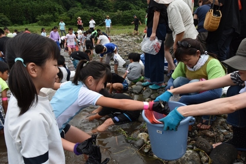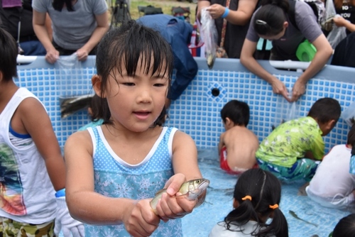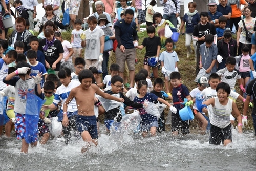 那珂川町 鮎とマスのつかみどり那珂川町の夏の風物詩『鮎とマスのつかみどり』