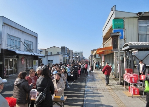 那珂川町の「花市・市神祭」 今年は1月27日(日)に開催します! 10:30~の市神祭は 花市より古くから行われているもの。 11:00~の福袋販売に向けて 宮司さんが福袋を厄除払いします。 福袋は限定250個!1袋3,000円です。 今年の中身を一部紹介すると… 人気の電気調理器 有名テーマパークのペアチケット ゴルフ場のペアチケット 那珂川町ブランド認定品 ふとん乾燥機 液晶テレビ 石油ストーブ 地元産米10kg お肉福箱(お肉の詰めあわせ!) など、どれも販売額の3,000円以上の 品物が入っていてかなーり豪華!! もちろん何が入っているかはお楽しみ。 平成最後の運試しをぜひ! ちなみに、毎年人気の福袋販売は こーんな行列が出来ます。 ![]() 販売開始から15~20分で完売することも。 早めに並んでおいた方がいいかも!です。 福袋の販売所は 「エレガンスやしろ」の前あたりです。 13:00~は がらまきが行われます。 ゲットできるのは、お菓子やカップめんのほか 協賛企業からの提供品などを予定。 老若男女問わず白熱する がらまきですが、 お子さまと大人は時間を分けて実施するそうですので お互い安心して参加できます。 袋は忘れずに、持参してくださいね。 ![]() このほか、商店会 女性部の皆さんが フリーマーケットを開催! 賞品交換所の向かい辺りで行われます。 新春恒例の 那珂川町「花市・市神祭」 たくさんの福を用意してお待ちしています! 【花市・市神祭】 日時:2019年1月27日(日)10:30~14:00 会場:新町下商店街 (足利銀行馬頭支店より東方面) お問い合わせ:0287-92-2249(那珂川町商工会) |