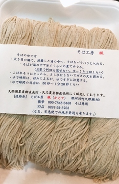 寒暖の差を生かして育てることで 香り高くおいしいといわれています。 その そば粉を使い、手打ちしたものが 「八溝そば」と呼ばれ親しまれているのです。 今回、スタジオにお持ちしたのは そば工房「楓」の そば。 地元産の そば粉にこだわり、 原材料は そば、小麦、水のみ。 家庭の味で食べてもらいたいとの想いがあり、 店舗は持たずに、農産物直売所や通販での 生そばの販売を行っているそう。 ![]() スタジオのお二人には、