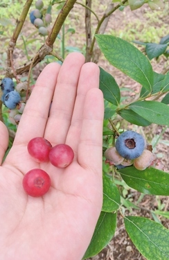 粒が大きいのが特徴で こちらは爽やかな甘みです。 ![]() 早生のあとに食べ頃となるのが ティフブルー。 大きさは一般的なサイズですが こちらも甘くておいしいですよ~♪ ブルーベリーは品種によって 美味しさの個性もさまざまです。 またこのほかにも現在、 早生とティフブルーの間に食べ頃になる品種や ピンクレモネードという赤っぽい実をつける ブルーベリーを育てているところだそう。 これらはまだ摘み取り対象ではありませんが 大切に大切に育てているので 数年後をお楽しみに☆ ![]() 摘み取り体験は入園無料&時間無制限で