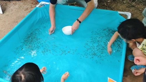 八溝ししまる&里山ホンモロコ試食会inサンタヒルズ![]() 八溝山系で獲れた野生のイノシシ肉「八溝ししまる」は ・焼肉(+いのししのタレ) ・フランク(ボイル) ・ジャーキー ・カルパス といろいろな食べ方で用意! イノシシ肉は初めて!という方も くさみがなく食べやすい八溝ししまるに 「あっ、おいしい!?」と衝撃をうけつつ 召し上がっていました。 おつまみのイメージがある ジャーキーやカルパスは お子さま人気もかなり高かったです。 ![]() 休耕田を活用して養殖されるコイ科の淡水魚「ホンモロコ」は 青のりの入った衣をつけて、天ぷらで。 パラリと塩をかけて提供。 サクッとした衣に、ふわっとした身。 淡白な味なので食べやすい! 骨ごと食べられるのも嬉しい。 こちらもお子さまに大人気でしたー! ![]() この日は町外からのお客様も多く ほんもろこを初めて見た!知った!食べた! という方も多かったです。 お子さまに楽しんでもらうよう 「ホンモロコすくい」や弓矢体験コーナーも。 金魚より すばしっこい! ![]() 「八溝ししまる」はサンタヒルズで 普段からキャンプ用に取扱いをしています。 この日も 「試食して美味しかったので買いました!」 というお客さまがいらっしゃいました☆ ホンモロコも、 「地元でも食べたい~~!!!」という声があがるなど どちらも大好評!!! 八溝ししまると里山ホンモロコは 那珂川町のお店で買ったり、飲食店で食べられます。 なお、八溝ししまるの焼肉用は お取り寄せ通販サイト【47CLUB】で取扱中です。 ぜひ、皆さんも召し上がってみてください♪ ![]() |