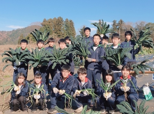 生徒からの 「地域の学校として 町の活性化に取り組みたい」という要望に応え、 昨年度から 「露地野菜で町おこし」をメインテーマとした 選択科目『農業と環境』という授業を行っています。 : 他の地域にはない、 めずらしい野菜を育てることで 地域の活性化につなげていく試み。 最近、栽培した「超大球キャベツ」は 道の駅ばとうのレストランに 食材として使われたりもしているんですよ! ![]() 12月某日、3・2年生合同の公開授業を 取材してきました! まずは「真冬に採れる新タマネギ」の収穫。 白い部分はもちろん、 緑色の部分も美味しく食べられます。 土にしっかり根を張ったタマネギを がんばって引っこ抜いて… 大きいのが採れましたー!!! ![]() 通常の新タマネギは6月頃の収穫ですが 冬にも出荷できるとなると 需要が見込めます。 このように、授業では ただ育てるだけでなく 農業としての戦略的な部分も学ぶそう。 この日は、収穫と同時に重量もチェック。 「どの日に定植したものが一番大きく育つのか?」 検証をしていました。 ![]() 続いてイタリア黒キャベツと呼ばれる 「カーボロネロ」の収穫。 イタリアンや煮込み料理に使われ、 レストランで需要がありそうな野菜です。 まずは、非常勤講師の平石先生から 収穫方法や注意事項を教わります。 ![]() 葉物野菜の「カーボロネロ」 見た目は柔らかそうですが 実際には意外と硬く、 生徒さんたちも グッと手に力を入れて収穫をしていました。 : 選択生の皆さんはそれぞれ、 農業に興味があったり、 友だちが授業を受けていて楽しそうだったから!など 様々なきっかけで この授業を選んだそうですが 公開授業での生徒さんたちは みんな、 先生とわきあいあいとコミュニケーションし 楽しくも懸命に野菜を収穫していました。 : 指導している平石先生は 「みんなは将来、農業に限らず 色々な仕事に就くと思うが、 一生懸命 取り組めば成果が出ることを 農業を通して学んでくれていると思う。 どんな仕事でも一生懸命がんばってほしい」 とお話してくださいました。 地域の活性化に繋げるだけでなく さまざまな学びを得られる授業『農業と環境』 魅力ある馬頭高校の取り組みに 今後もぜひ、ご注目ください! ![]() |