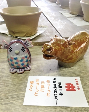 小砂焼「干支の置物」小砂焼の窯元・藤田製陶所では