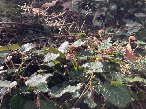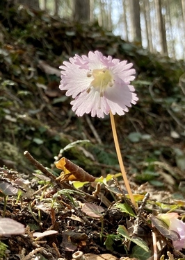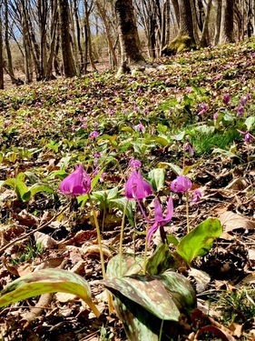 昨年の干ばつの影響もあり 今シーズンは その一段下くらいから咲いていました。 さらに下の方では、一生懸命あたまをもたげて つぼみをつけた株がたくさん。 ![]() イワウチワは開花すると