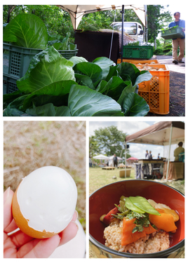 皆さんは地元野菜を食べて休憩をはさみつつ、