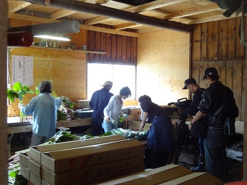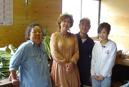 収穫を急ぐ斉藤さん。そんな斉藤さんちの蕗の収穫のお手伝いに やって来てくれたのが山形出身のアイドル 佐藤唯ちゃん♪ 朝早くから斉藤さんの蕗畑で収穫のお手伝い! 茎の根元を大き目なカッターを使って上手に収穫していました。 そして収穫した蕗は斉藤さんのお宅の作業小屋で蕗のサイズごとに 分けて束ねてラップしていきます。 この包む作業はとても見た目以上に難しいとのことで 奥様ですら上手に出来ないとのこと(笑) 撮影は順調に進みます。 唯ちゃんは台本もなく斉藤さんご夫婦の飾らない素の優しい人柄を 浮き立たせるように会話を弾ませます。 こりゃ本物の孫のようだわ・・(笑) ![]() 出荷の準備のお手伝いが終わったところでいったん休憩。