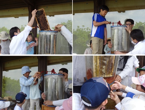 これが今回参加した方全員のお土産です♪ しぼり終わった蜂の巣・・ いやぁ~・・・・・きれーーーーっっ!!ヾ(≧∇≦)ゞ 誰に教えられたわけではない蜂の本能の技! 更にすごいのは!! この蜂の六角形!指で散々つぶしてはちみつを頂いてしまっても また蜂の巣に戻すとこの通り!!!完全なる芸術的六角形を再生するのだそうです! すごい・・スゴすぎるよ・・ミツバチ!!。:゚(。ノω\。)゚・。(感激) ![]() しぼりたての蜜の瓶をまるで風呂上がりの牛乳のように飲みたがる子どもたち(笑)