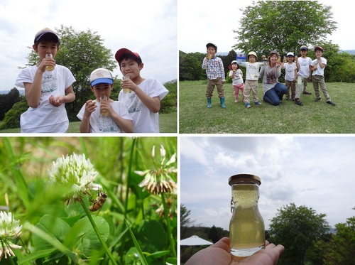 ・・あ!?バレた?もちろんShinlyも・・(笑)いやいや!飲みたかっただけです!(笑) 近くにいた元気な子どもたちと記念撮影♪ いえーぃ!!(笑) みんないい顔してるなぁ♪o(≧∇≦o)(o≧∇≦)o 夏の働きばちの平均寿命はわずか40日程度で、しかも実際に外に出て 蜜を集めるのは、だいたい10日間くらいと言われています。 そしてそんな働き蜂が一生に集める蜜の量はわずかティースプーン1杯程度・・。 ━━Σヾ(゚Д゚)ノ━━ 働き蜂さんありがとう♪ せっかく頑張って集めた蜜をこんなにたくさん貰っちゃってごめんね。。 ![]() はちみつ採取が終わった後はランチタイム。