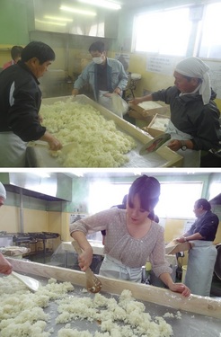 今日の作業はここまで!! 今回は蒸したお米をほぐして麹菌と混ぜ合わせるという作業でしたが ほんわかあったかいお米はしっとり柔らかくて何とも言えない触感で 麹と混ぜ合わせるとほろほろと・・ 触っているうちに面白くなっちゃって童心に還っちゃっているふたり(笑) ワクゥO(゚▽゚o)(o゚▽゚)oワクゥ♪ お米の種類や採れた時期によって触感が全く違うというのも発見でした! 次回はどんな作業が待っているんでしょう♪ 初めての味噌作り体験・・美味しいみそ汁のために!!!ふぁいとーっ!! つづく・・。(*^-゚)/~Bye♪ ![]() |