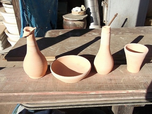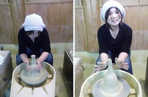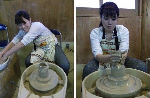 なかなか陶芸チャレンジ!part4!「細いもの編♪」![]() ![]() 佳代ちゃんは定番風だけど味のある(?)真っ直ぐ型 Shinlyはやっぱりこの人は何かいじりたいらしく(笑) 花びら風(?)に反り返し型 そして2人の苦労は結果として 佳代ちゃんの作品を上から見ると・・ またしても相当細い1輪しか入らない(笑) むしろ水すら入りにくい(笑) (ー△ー;)エッ、マジ?!!! ![]() でも1輪挿しですから!どんな細い花でも1輪刺されば 1輪挿しには違いない!!! Σ(-`Д´-ノ;)ノ?! Shinlyの作品は口は1輪挿しとしては完璧(?)なサイズですが この凝り過ぎた口元の危ういこと危ういこと・・ 焼きあがったら無くなっている可能性大・・ ヒイィィィ!!!!(゚ロ゚ノ)ノ 今回は余った土で好きなものを作りましょう!と自由課題もあり 佳代ちゃんは冷酒グラス・・Shinlyは「お新香皿」・・ ![]() 佳代ちゃんの冷酒グラスがびみょーに歪んで見えるのは「味」 もしくは「趣」わ・ざ・と!ですよ♪(笑) (・д・;)σ Shinlyのお新香皿は本人も藤田師匠も思いのほか 中心を外れることない綺麗な円を描き師匠的には・・ つまらない(笑)なんかやらかせばいいのに・・ (・`ε・´*)チェ いやいやいや・・褒めようよそこは(笑) (*ノ・ω・)ノオオオオォォォォ それぞれの作品は乾燥され色付けに入ります♪ 2人の中にはどんな作品に仕上げたいのかと 気分はカラーコーディネーター・・ 色付けの模様は・・To be continued♪ (*^-゚)/~Bye |