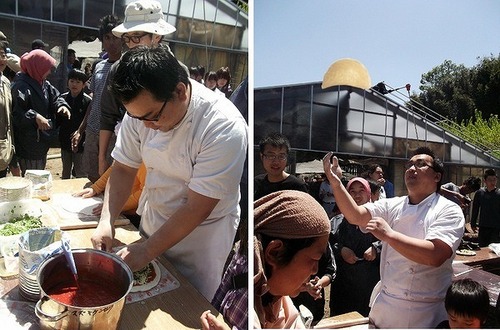 那珂川でもLet's農!? 国際ピザ交流編♪![]() 先日蛍まつりのGoodリポートの記事の中でも 大人気だったと書いた[color=cc0099鈴木さんの移動ピザ窯[/color](笑) ピザ生地を掌で丸い形に潰していきます。 厚さ2cmくらい(?)平たくなったら今度は麺棒で延ばします。 手前から向こうへ伸ばします。 そして向きを回転させながら均等に丸く伸ばしていきます。 この時四角くならないようにしましょう♪ ○□○□○□○□○□○□ 有る程度薄くなったらピザ生地の外側の部分を指で伸ばし 最後はピザ職人さんの腕の見せ所である[color=cc0099生地を投げ[/color]て 最終的な薄さにするのですが・・さすがに今回はそこまでは・・ そこで鈴木さんにその技を見せていただいたところ 見事にくるくると軽やかに回りながら真っ青な空に舞い 再び鈴木さんの腕に戻ってきました! \(⌒∇⌒)ρ( ・▽・)_/ 〇 ~゚ ![]() いやぁ・・カッコいい(笑) 伸ばした生地にピザソースを載せます。 真中から外側に・・外側の2cmくらいにはソースを塗らないのがポイント! そして刻んだ食材を好きなように乗せていきます♪ 旬の野菜やベーコンなど♪そして差し入れで頂いた茹でた筍も♪ 最後にオリーブオイルを回しかけてピザ窯へ! ![]() ものの1分程度で焼き上がったピザにみんな[color=cc0099感動の歓声[/color]が上がります♪ ゜+。:..:。+゜\ (o´∀`o)/ ゜+。:..:。+゜ 自分でつくったピザを食べる!しかも超絶うまい!(笑) ヾ(≧∇≦)ゞ 鈴木さんのピザ窯は那珂川町でイベントが行われるときに 時折現れるので見かけたら是非!チャレンジしてみてください♪ そして依頼があればきっと学校などへも訪れて子供たちに ピザ焼き体験をさせてくれると思います♪ (´∇`*o)(o*´∇`)o 子供たちに教えるのもお手の物♪ 教えている鈴木さんも楽しそうでした♪ ![]() もちろん佳代姫&Shinlyもオリジナルピザを作って頂きました♪ 美味しかったのかって? ?(・∀・)σ そりゃぁもう!なんせピザの紹介だけで1チャレンジ 使って記事書いているくらいですもの(笑) 皆さんが真剣に・・そして楽しそうな笑顔! いかがですか♪ピザ・・たべたくなっちゃったかな(笑) ♪(゚▽^*)ノ⌒☆ ♪ To be continued ♪(*゚▽゚)ノ*:・・:* |