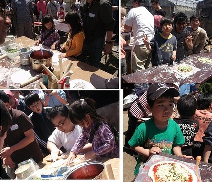 なかでもこのピザ窯の前では子供も大人ももう夢中!