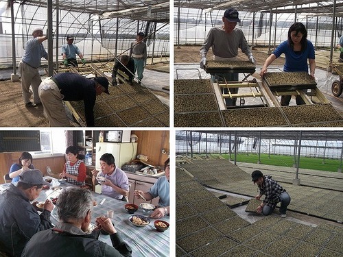 那珂川町でもLet's農!? PartⅡ 発芽編![]() 発芽した苗床はまるで「もやし畑」(笑) いたずらっ子たちはついつい触りたくなります(笑) エヘッ(●・∇・●)>" ![]() つんつんつん・・あら意外と固い!硬い! けっこう痛いくらいです・・ (’▽‘〃)アラ? いたずらはそのくらいにしなさーい! オイオイ...( ;・_・)ッ( ゚ー゚)ウキ... ということで敷き詰め作業のお手伝いです♪ 機械にみんなでどんどん苗床を差し込んでいきます その隣で手作業で苗床を並べるのが・・ いやぁ・・大変(笑) この時まだぎっくり腰の病み上がりだったのに へーきへーきーなんて調子に乗ってひたすら 並べていたShinlyは帰りにはすでに足腰めいっぱい 大変な筋肉痛に・・(笑) 翌日の歩き方のへっぴり腰っぷりったら・・(笑) (≧m≦)ぷっ おかげで腰痛はわからなくなっちゃったとか(笑) (;´д`) ![]() そしてみんなで作業した時にはみんなでお昼ご飯♪ この日も手作りの美味しいカレーライスを頂きました♪ みんなで食べるから最高のごちそうです♪ ♪(*´▽`)◆ゞ ε= (^□^*) ♪ ヽ(*^O^*)/ このあとは15㎝くらいに育った「苗」は それぞれ農家さんのお宅の田んぼで手塩にかけて 美味しいお米へと育ってゆくのです♪ 岩村さん!みなさん!ご協力ありがとうございました。 m(_ _)m ・・ん? あとは農家さんで・・? それじゃぁ・・これでおしまい!? お米・・食べられないじゃん!!! ( ̄ ̄∇ ̄ ̄; アリャ? ・・・とそこへ朗報♪ 5月某日・・那珂川町で田植え体験ができるらしい!!と。。 よっしゃぁ~!いくぞーっ!次は福島農園だ~!! εεεεεヾ(*´ー`)ノ To be continued♪ |