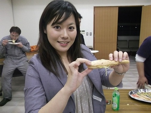 塩ダレで作ったもの・・ さらにオリーブオイルを使った塩味のトマト入りを トマトを最初から入れるものと後から生トマトを足すような イメージで2種類・・ ○o。(; ̄▽ ̄)ノ_彡☆ハハハ それぞれを食べてソース味か塩味かって検討中に 思いついたんだけどさ・・両方半分ずつにしたら? ・・・(・。・;)・・(ノ*~∇~)ノオオォォォ 鮎最中の皮の部分を真ん中に置いて塩味とソース味が 仲よく2種類♪というわけでネーミングは ジャ゙━| o|。゚+.ヾ(・∀・)ノ゚+.゚|o |━ン 「那珂良し焼きそば」 (゚ー゚☆キラッ ![]() 塩味の場合ソースと違って麺がもちっとしてつるつる感がないという意見で
