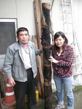 雨の日は掻き傷からバイ菌が入り、木が腐ってしまうため 漆を掻くことができないそうですが、 雨の日は、下草を刈ったりと足場を整えるなど 本当に休む暇がありません。 『 漆一滴 血の一滴 』 そんな秋田さんの言葉が印象的でした。 ![]() 漆が流す樹液は、人間でいう血と一緒です。
