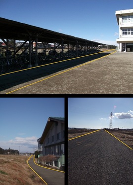 田んぼの中にのびる真っすぐな道をたどっていくと