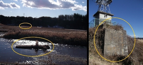 この箒川には 赤い鉄橋がかかっていて、今でも 橋脚台が 残っているという。