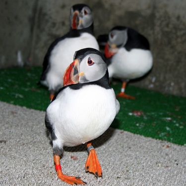 ![]() ☆パフィンは「海のピエロ」や「癒やし鳥」などの異名を持っている、三角の目がとてもキュートな鳥。体はペンギンのような白黒、くちばしと足は鮮やかなオレンジ、そして目が三角!日本の動物園では、那須どうぶつ王国だけで会える鳥なんですよ。しかも7/19には、ペンギンが自由に散歩する空間の新施設「ペンギンビレッジ」もオープン!「ペンギンビレッジ」の中に、パフィンが水中を飛ぶ姿を見ることができる「パフィン水槽」がありますよ♪