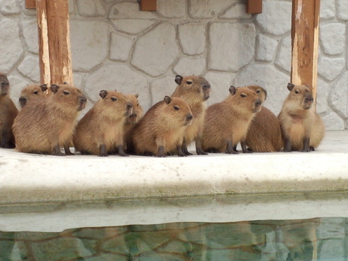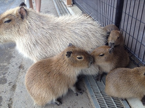 ![]() ☆カピバラの赤ちゃんたちはとってもキュート!お父さんお母さんをそのまま小さくしたような見た目ですが、やっぱり赤ちゃん。ミルクを飲んだり甘えたり、兄弟でじゃれあっている姿はまさにBABY♪