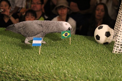 「ヨウム」のオリビアが行う、サッカー勝敗占い!