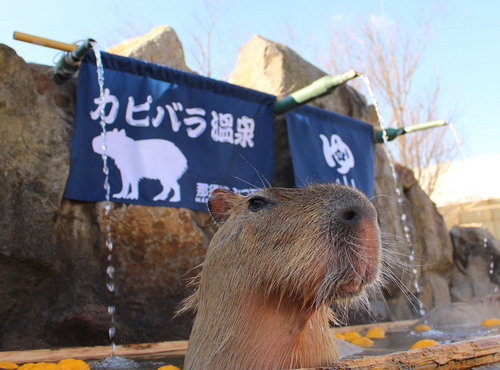 *最近では、いろいろな動物園で、冬の期間カピバラのお風呂を実施!