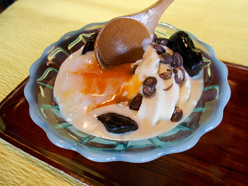 温泉玉子と高原花豆、あずきのとっかんをトッピング!