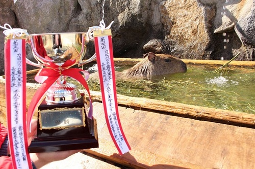 1月8日に調停を結んだ後、すぐに5つの動物園対抗の「カピバラ長風呂対決」がおこなれました。