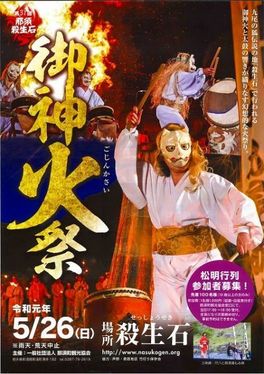 10連休も後半戦を迎えておりますが GWも過ぎた頃に、那須町では、すぐに次のお楽しみがやってきます! 5/26(日)【御神火祭】開催! 九尾の狐伝説の地「殺生石」で行われる御神火… 太鼓の響きが織りなす幻想的な火祭り。 今日は、この「御神火祭」についてご案内~ 那須町で一番有名な 火祭り! 今回31回目の開催を迎えます。 この「御神火祭」とは…ここ那須高原に初夏を告げる那須町での一大イベントで、 毎年このお祭りを観るために、多くの方がいらっしゃいます。 もともとは、山の怒りを鎮めるために始めたお祭りでしたが、 いつしか無病息災と豊作を祈る行事として、現在は定着しているお祭りになります。 今年は午後3時頃から「九尾の市」が始まって、 本当においしい、地元のフードが味わえます! フード以外にも… 狐のお面 や キュービーグッズ などの販売も! また、那須の語り部「九尾の狐」や、三味線・尺八、那須湯もみ唄など 殺生石に響く音楽イベントも開催! 夜7時過ぎ、「松明行列の出発」そして「神事」が行われて いよいよ夜7時30分「御神火」点火 天まで届くほどの炎が立ち上る「御神火」の灯りに包まれながら 祭りのメインイベント「白面金毛九尾の狐御神火太鼓」の強烈なビートと笛の音が、 「殺生石」とあたり一面に響きわたります! 松明行列から始まる「御神火祭」。 白面金毛九尾の狐太鼓と笛の音が奏でるクライマックスまで、 那須高原の一夜の祭典の模様を是非間近で感じてください。 ※「松明行列」への参加受付は、26日(日)当日の午後5時~6時まで「那須観光協会」の窓口で行います。 松明行列への参加料は、おひとり様1,000円。先着100名様となります。 このお祭りでは、狐顔になってお祭りに参加するのが定番! 会場で「狐のフェイスペイント」して一緒に楽しもう♪ ![]() |