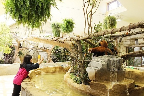 ■「アジアの森」は、アジア圏にくらす動物達の世界を、実際に生息地の植物を植栽するほか、 作り物の樹木や作り物の岩を配置して、自然環境を再現した、全天候型の屋内施設です! ・今年3月には、王国タウンエリア全体に、雨でも濡れる事なくエリア内を周遊できる 回廊が完成し、エリア内全体が全天候型のエリアに生まれ変わりました。 ・この回廊を通りぬけると、「アジアの森」が広がります。 ・「アジアの森」の展示動物は… レッサーパンダ、ビントロング、コツメカワウソ、マヌルネコ。 ・館内の天井高は、4メートルから6メートル程あり、 樹木をのぼるレッサーパンダやビントロングなど、 樹上で生活する姿を間近でご覧いただけます。 ・その他、コツメカワウソが、水中をのびのびと泳ぐ様子や、 マヌルネコの生き生きと生活する姿が、ガラス越しに観察できるようになっています。 ・来国者の安全を第一に、出来る限り人と動物との障壁をなくし、 動物の世界に人が入り込んで、探索するような高揚感でご覧いただけます。 そして、5月7日(火)よりレッサーパンダの生態を飼育員が解説し、 来園者が餌やり体験できる「レッサートーク」や ビントロングの生態を飼育員が解説・餌やりができる「ビントーク」を開催しています。 ![]() ■新しいエリア「スカンクハウス」もオープンしました!