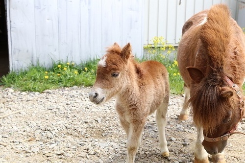 ・「スカンクハウス」は、4頭のシマスカンクを間近で観察できる屋内施設です。 ・シマスカンクの展示は、動物園では那須どうぶつ王国を含めて3園のみで 東日本での展示は、唯一となります。赤ちゃんが2頭いて日本で唯一です!! …しかも、スカンクといえば、のあの匂いかかげる!? 展示個体は、臭腺をとっているため臭わないのですが… ・展示場には、スカンクの臭いを体験できる模擬臭のコーナーを設置してありますので、 スカンクの臭いを体験することもできますよ。 ![]() ■そして、最後に世界最小の馬といわれるファラベラの赤ちゃんが