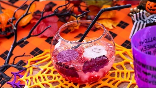 「お絵かきハロウィンソーダ」773円(税込850円)です。 グラスの底に沈むのは、怪しげな色をした赤色のアイス。 その上には、こうもりのゼリーとおばけのゼリーをトッピング。 ここで魔女見習いのみなさんの出番です! 真っ白なおばけにオリジナルの顔を描いてください♪ アイスとゼリーの味は食べてからのお楽しみ!! ![]() ハロウィンフェアは、9月1日〜10月31日までの期間限定のフェアです!