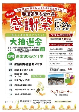 特等の新米30kgや那須和牛詰め合わせなど、豪華景品が当たります。