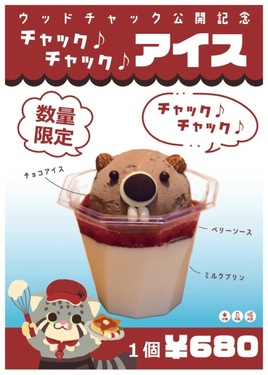 ウッドチャックの公開を記念して、7月21日までの期間限定で「チャックチャックアイス」を販売。 カフェ・マヌルヌマにて1個680円(数量限定)で提供され、ウッドチャックの顔を模したデザインで、頭はチョコアイス、下の部分は別フレーバーの美味しいデザートです。 ![]() 【マヌルネコの新個体情報】