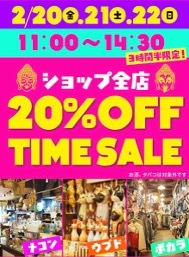 11:00〜14:30(3時間半限定)ショップ20%OFFタイムセールを開催! オトクなアジアンオールドバザールをご堪能ください! ![]() |